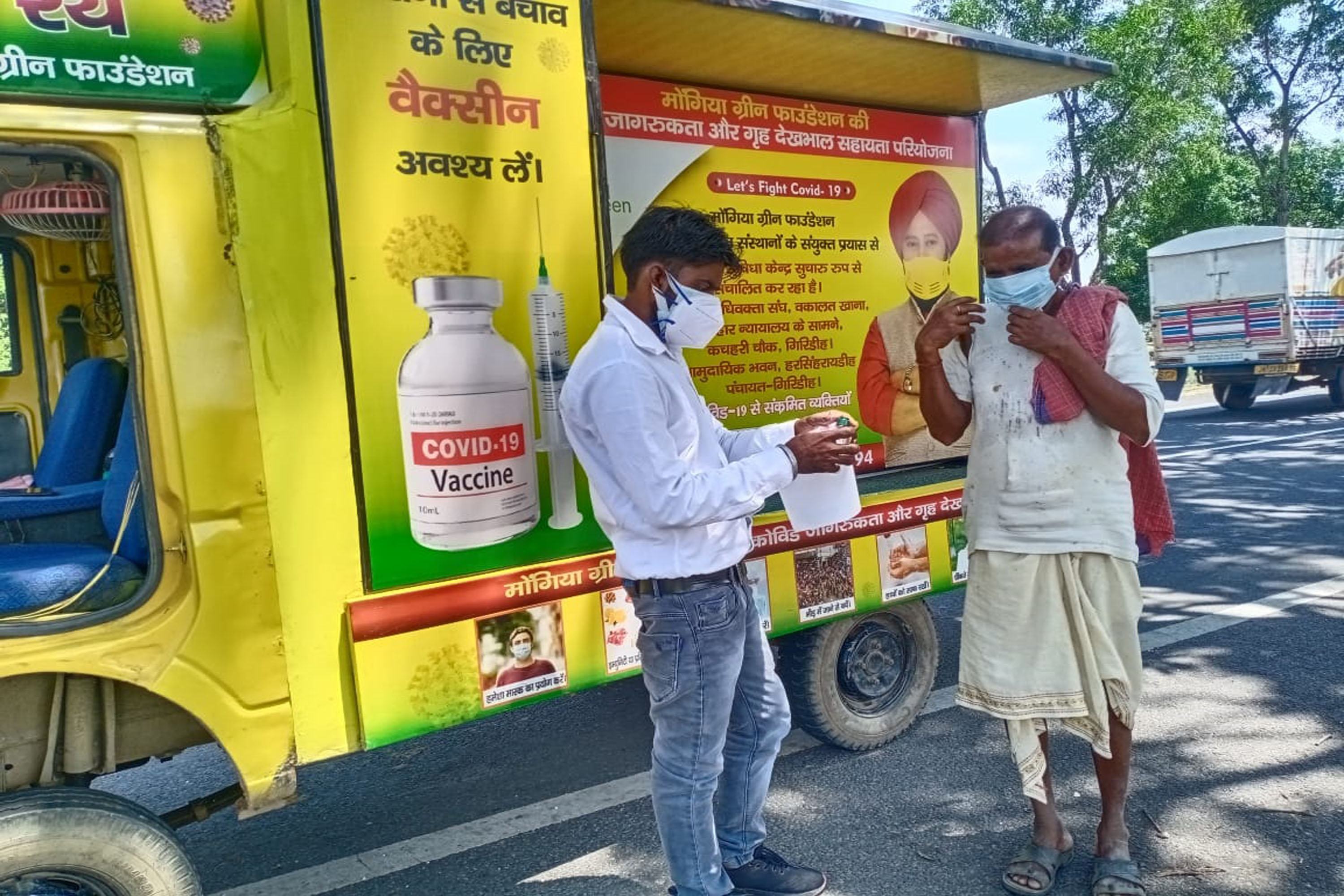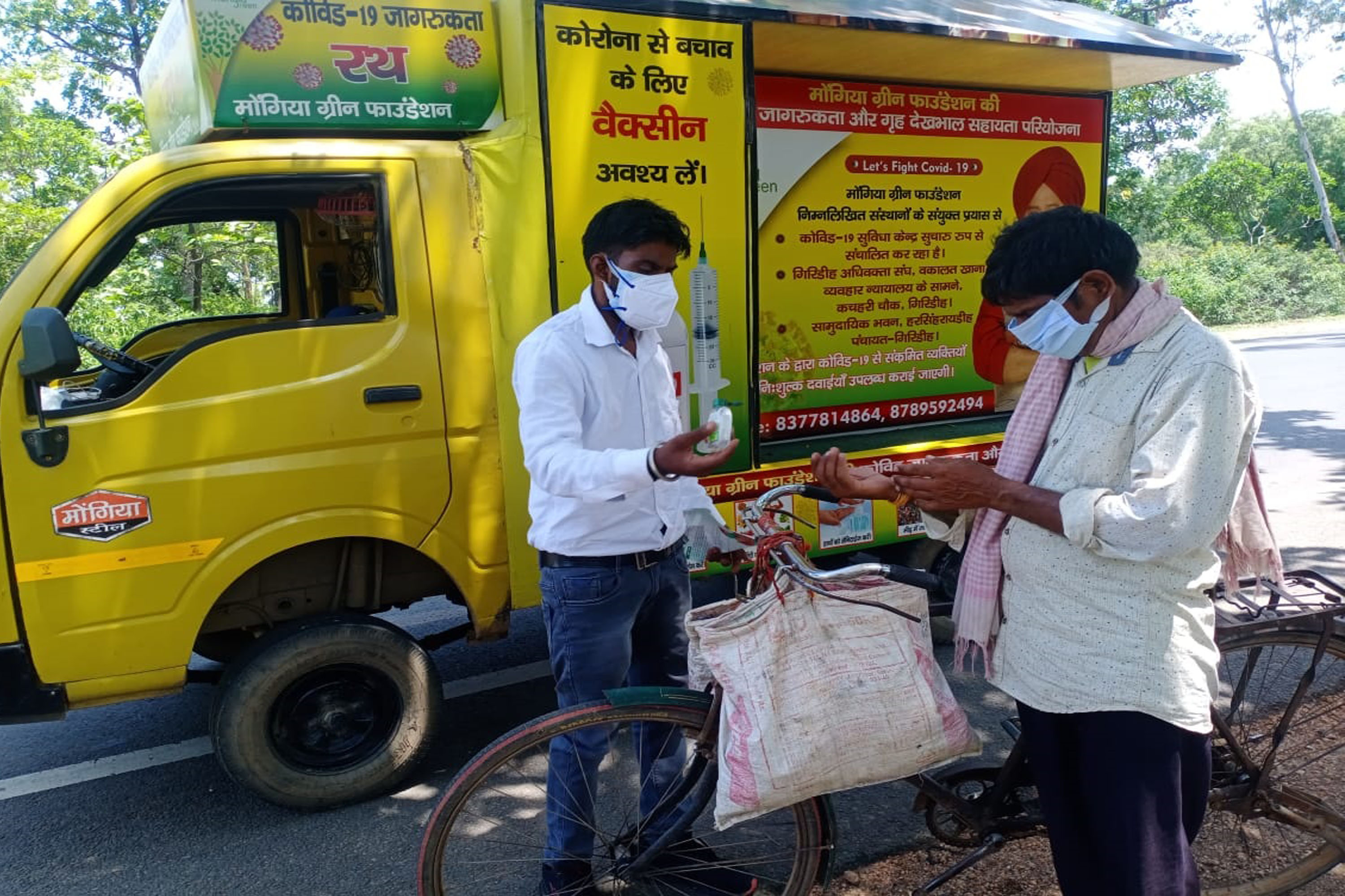 During the pandemic, Mongia Green Foundation has focused on providing Masks and sanitizers and information relating to Covid-19 to the remotest villages of Girdih, Jharkhand. The team has been raising awareness on the importance of hygiene and supporting individuals by providing Covid 19 relief kits and encouraging people to take vaccine
